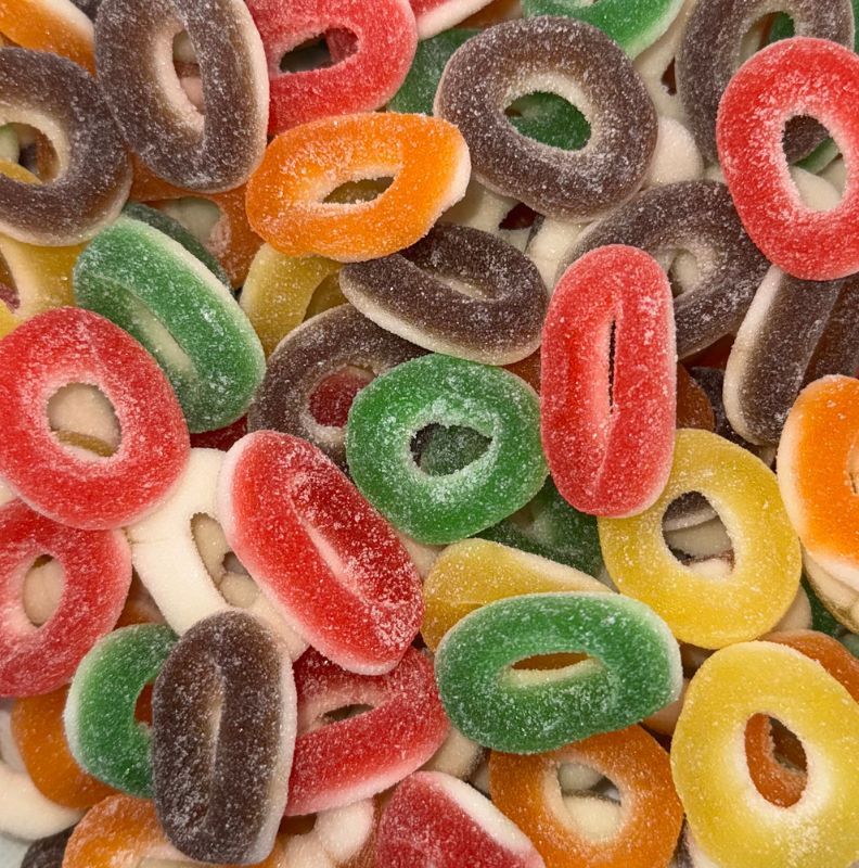 THE Vidal Sour Multi Coil Gum Sugar A colorful, fruity -flavored rubber sugar that conquers sweets with the shape of a sugar -coated ring and a variety of taste. The product is gluten -free so it can be consumed gluten sensitive.