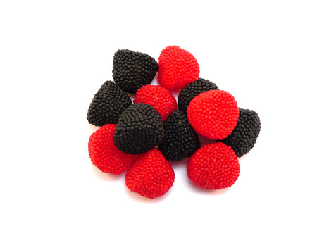A retró málna egy népszerű, gyümölcsös ízű gumicukor, amely fekete és piros bogyókat idéző formájával és roppanós cukorgyöngyös bevonatával hódítja meg az édesszájúakat.