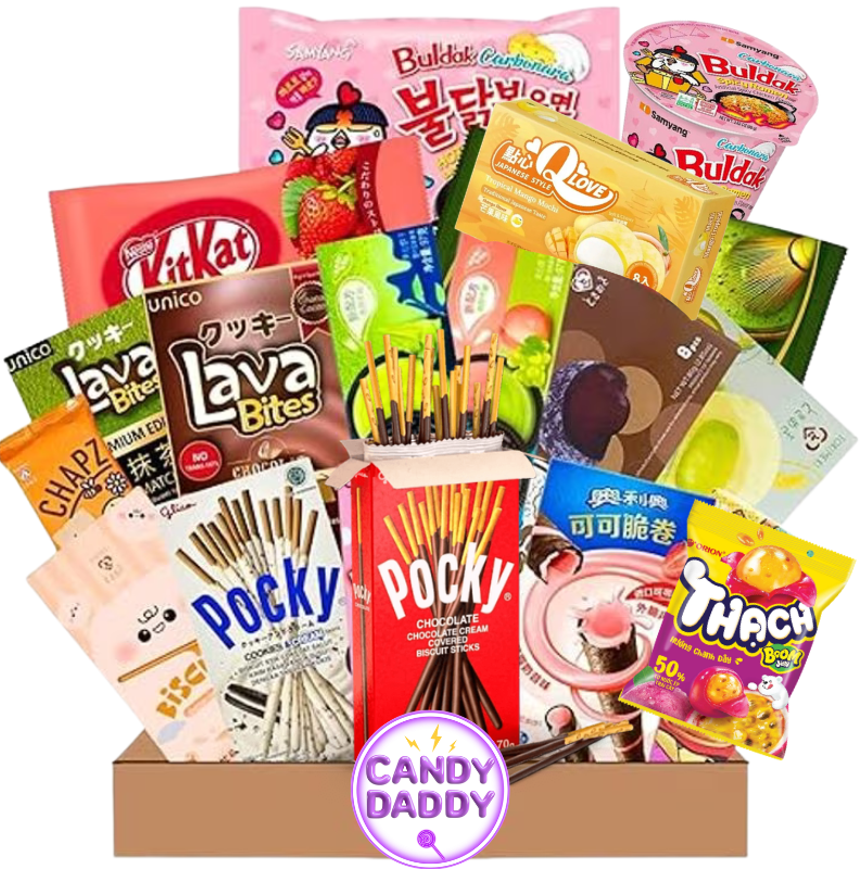Odkryj smaki Azji dzięki temu specjalnemu pudełku z przekąskami! 20 ekscytujący przysmak w opakowaniu - chrupiące chipsy, specjalne cukierki, paluszki, galaretki, gryzaki i inne egzotyczne niespodzianki Z Japonii i Chin. Idealny prezent lub wspólna degustacja z przyjaciółmi! 🥢🍬